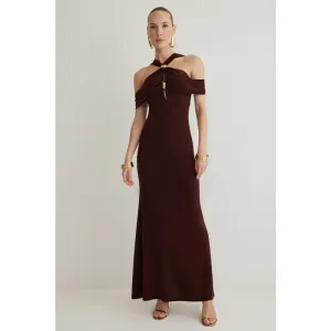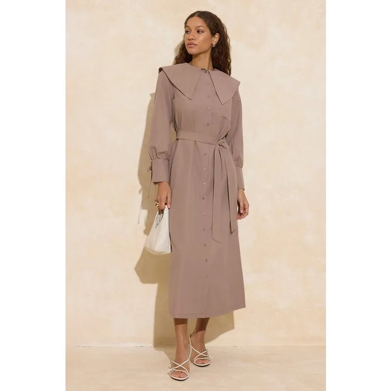 Bruine platte maxi-jurk voor dames, lange casual/dagelijkse A-lijn jurk met hijab