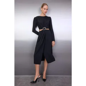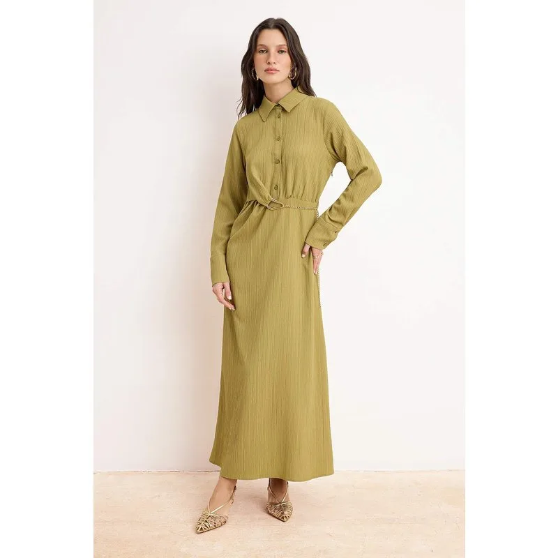 Steen Detailed Cuff Gebreid Jurk Khaki