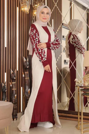 Dames Overhemd Kraag Detailed Half stolp Thin Seasonal Cold Yarn Gebreide kleding Jurk Bourgondisch