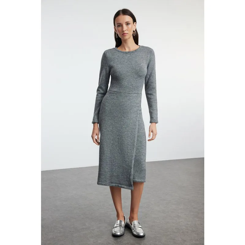Grijze, rechte midi-jurk voor dames, lang, geschikt voor casual/dagelijks gebruik.