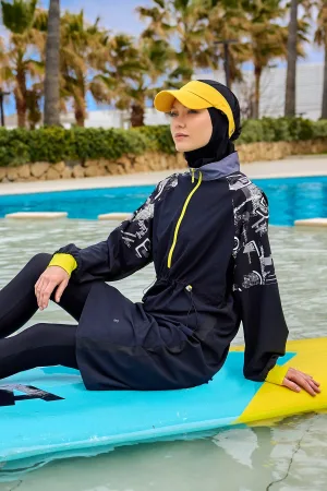 Zwarte, volledige dekking, bescheiden Burkini met mouwdetail