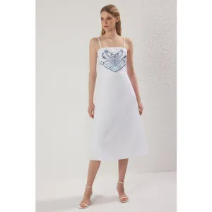 Damesjurk in ecru met borduursels / Geborduurde midi-rok, casual/dagelijks.