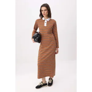 Gestreepte maxi-jurk voor dames, lange casual/dagelijkse A-lijn jurk met hijab