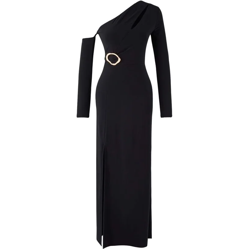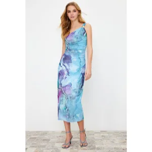 Abstracte midi-jurken voor dames met één schouder, casual en nauwsluitende pasvorm