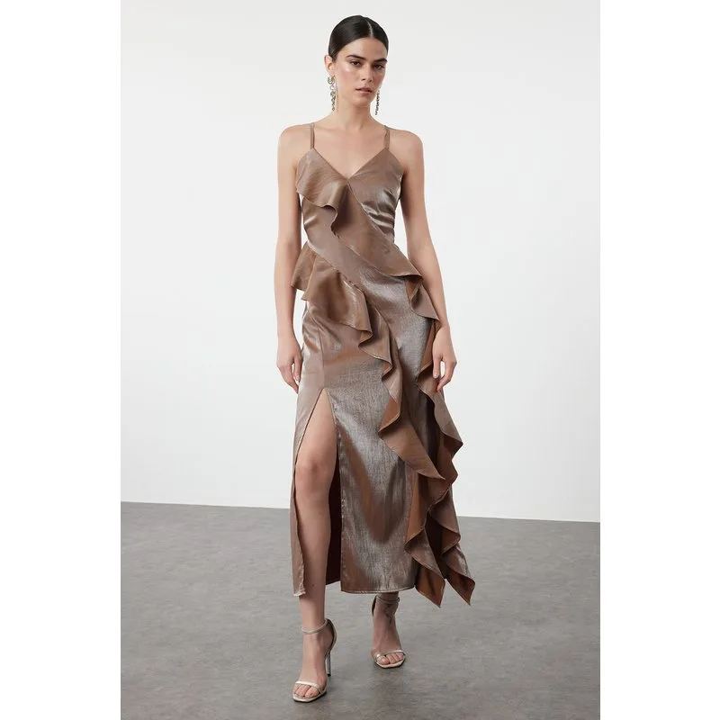 Damesjurken Unifarben Midi Spaghettibandjes Afstudeer-/Galajurken