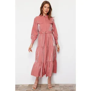 Damesjurken in roze effen kleuren, lang, elegant, normale pasvorm, bescheiden mode
