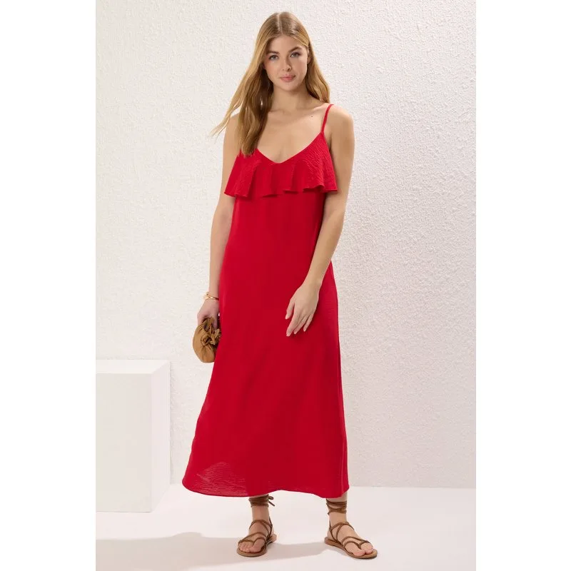 Bedrukte midi-jurk voor dames met spaghettibandjes, oversized model, perfect voor op het strand.