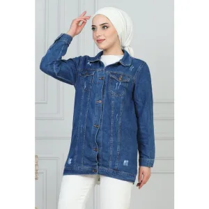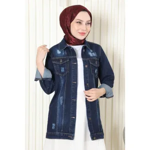 Geknopt Denim Jasje Donkerblauw