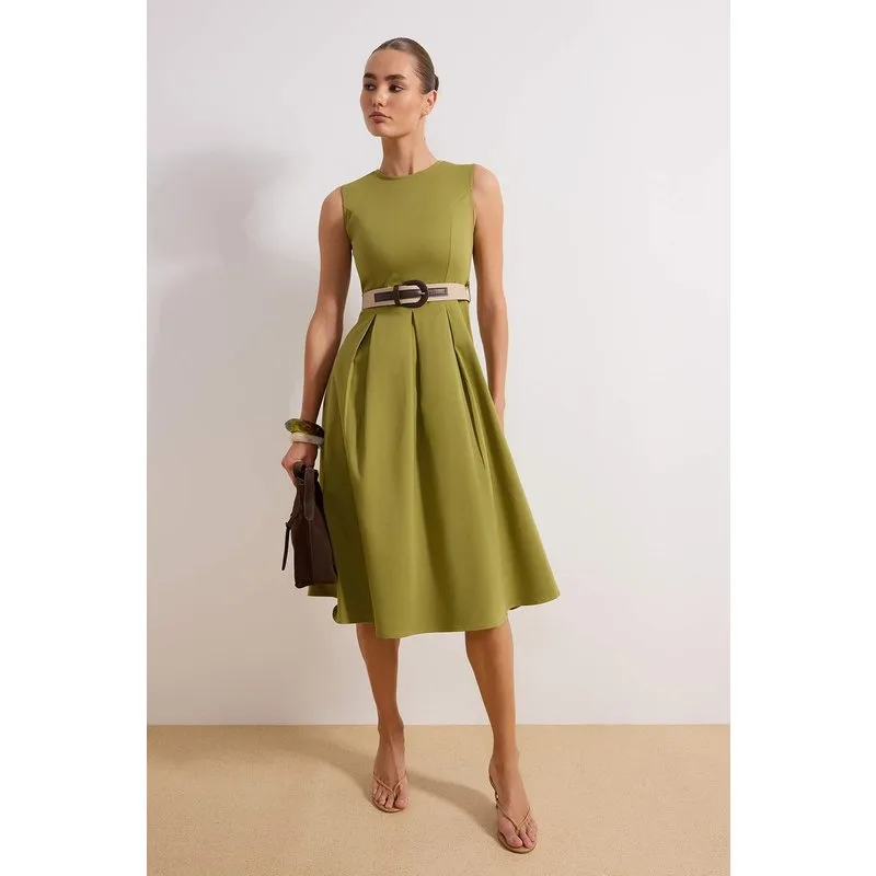 Platte, mouwloze midi-jurk voor dames, casual/dagelijks model skaterjurk