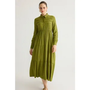 Damesjurk met overhemdkraag en ceintuur, lichtgroen