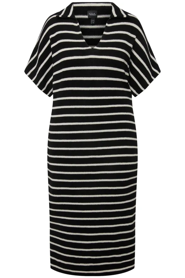 Ulla Popken Gebreide jurk lichtbeige / zwart
