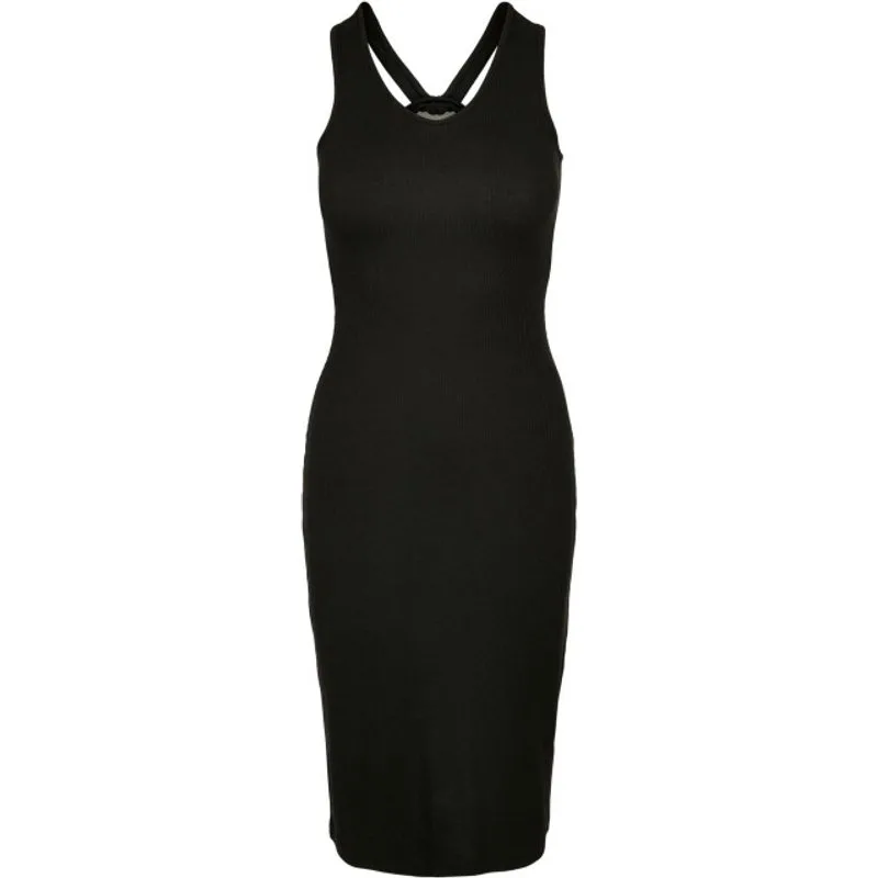 Urban Classics Dames geribbelde mouwloze midi-jurk