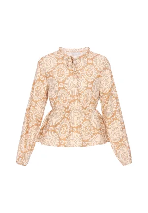 Usha Jurk ‘Casual’ bruin / spar / lichtgroen / wit