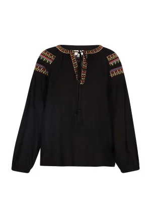usha sjaal blouse qisha Dames Zwart Veelkleurig