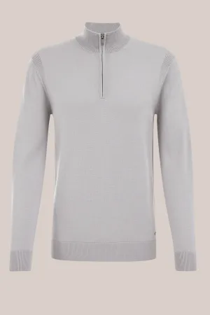 Van Gils – Heren trui met rits – Lichtgrijs – Merino wol –