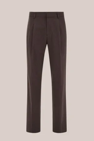 Van Gils – Heren regular fit seersucker pantalon met streep – Regular fit – Donkerbruin – Katoen –