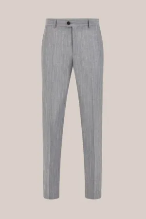 Van Gils – Heren slim fit pantalon van linnenmix met krijtstreep – Slim Fit – Grijs – Linnen –