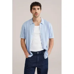 Van Gils regular polo gebreid lichtblauw