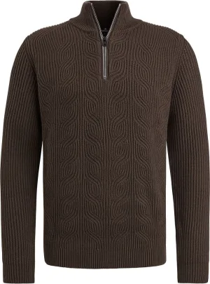Vanguard Trui Half Zip Structuur Wolmix Bruin