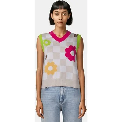 Vans Stella Sweater Vest Mended Check Denim Oatmeal