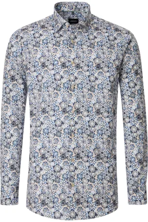 Venti Overhemd blauw, Bedrukt