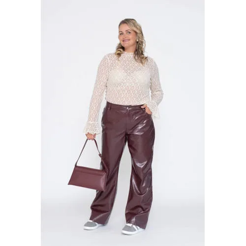 VERO MODA CURVE imitatieleren wide leg high waist coated broek donkerrood