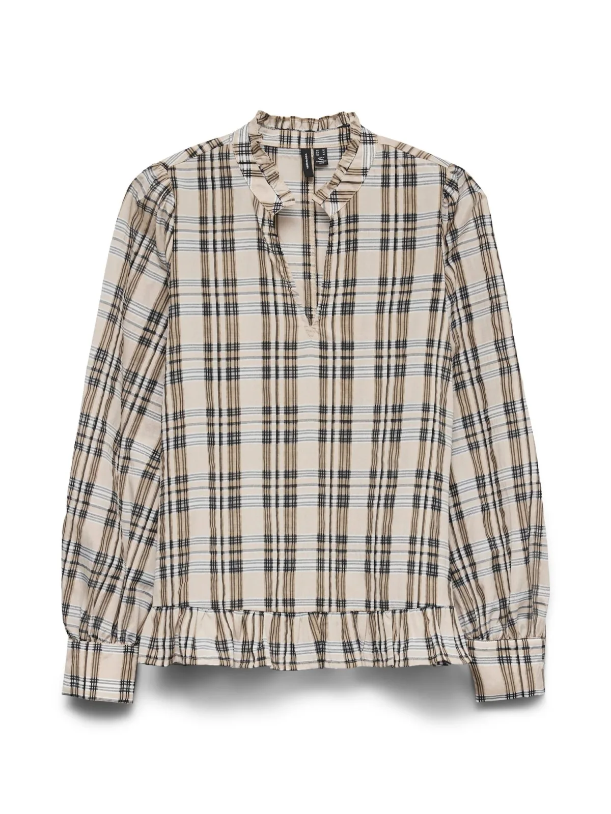 VERO MODA Blouse ‘VMMali’ lichtbeige / donkerbeige / lichtgrijs / zwart