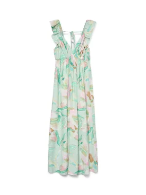 VERO MODA Jurk ‘VMJosie’ petrol / lichtgroen / lichtroze