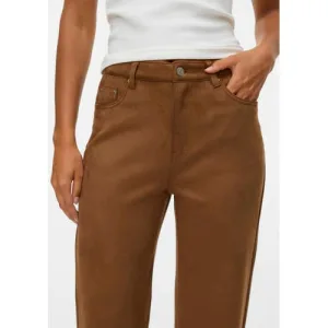 VERO MODA suede wide leg high waist casual broek bruin
