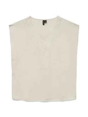 VERO MODA Blouse ‘VMJESMILO’ donkerbeige / wit