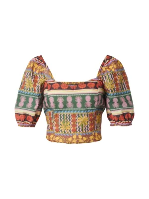 VERO MODA Blouse ‘VMTruely’ sepia / smaragd / lichtrood / offwhite