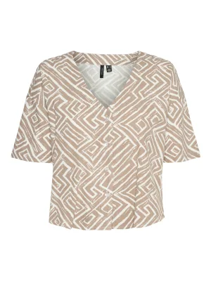 VERO MODA Blouse ‘VMJOSIE’ crème / brokaat / donkerbruin