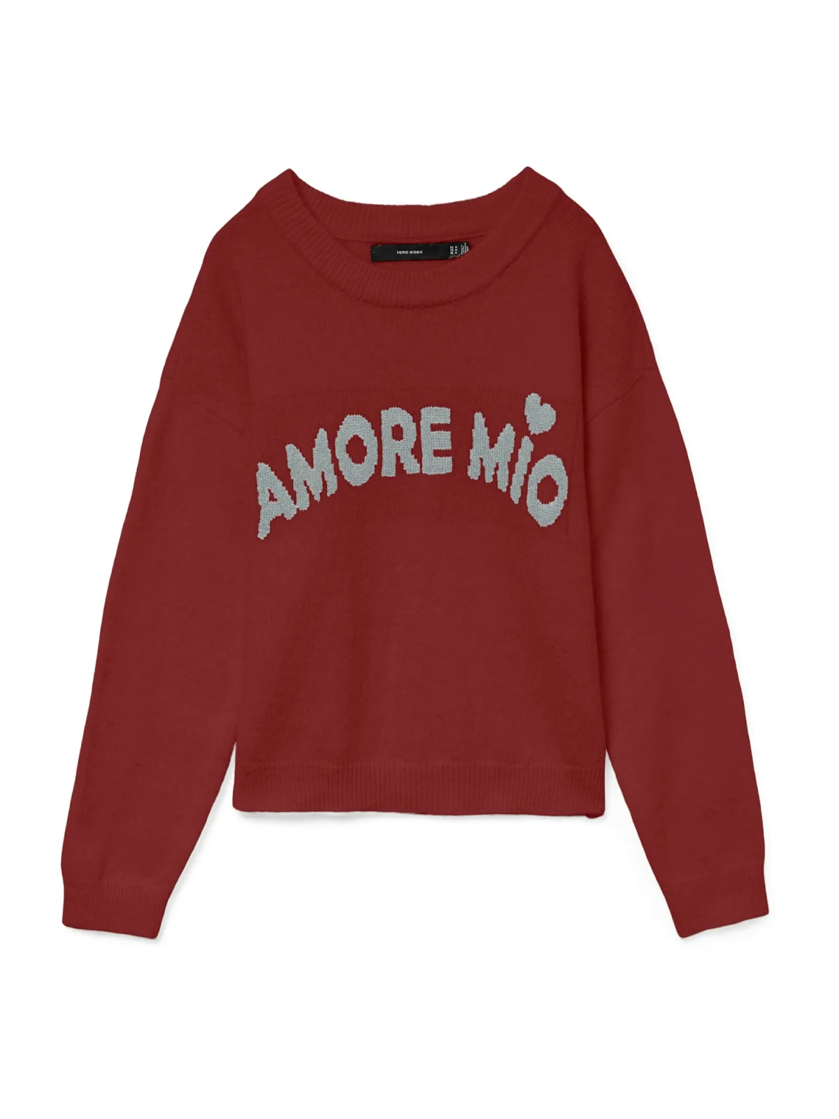 VERO MODA Trui ‘VMAMOREMIO’ roestbruin / lichtgrijs