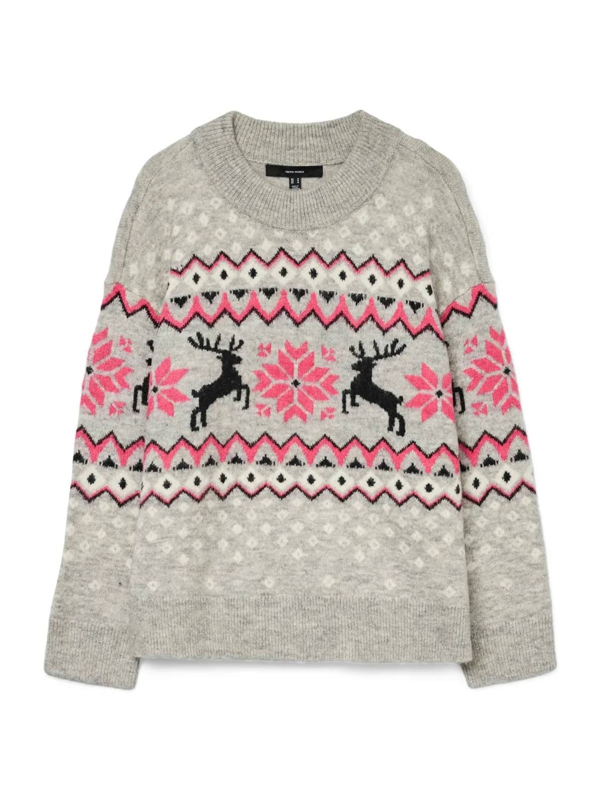 VERO MODA Trui ‘VMSANTANORDIC’ lichtgrijs / pink / zwart / wit