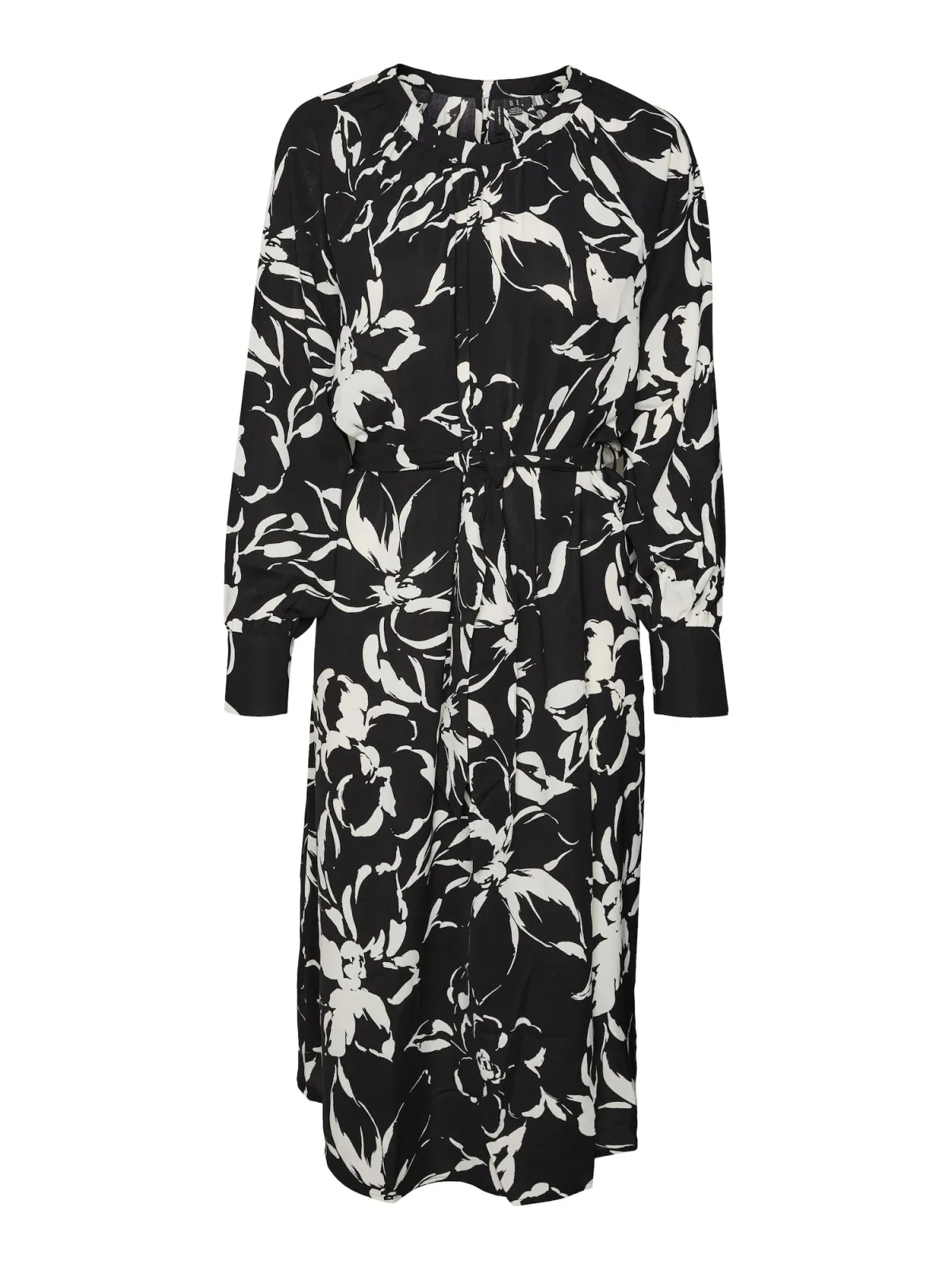 VERO MODA Jurk ‘VMBUMPY’ donkerbeige / wit
