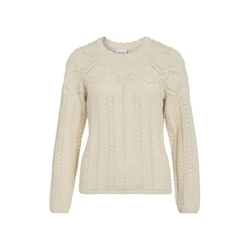Vila Vimarian o-neck ls stripe knit top ecru dessin