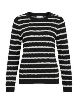 VILA Gebreid vest ‘VITrut’ zwart / wit