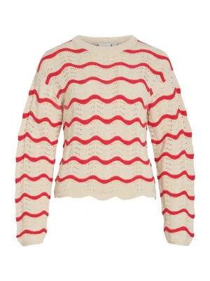 VILA Trui ‘VIWAVE’ crème / vuurrood