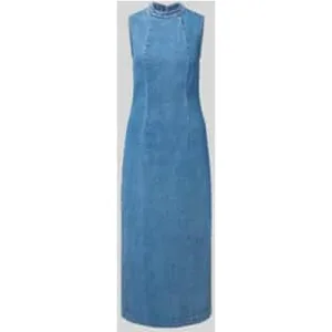 VILA wide leg regular waist casual broek met krijtstreep blauw