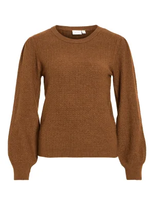 VILA Gebreid vest ‘VILory’ bruin gemêleerd