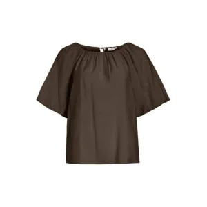 VILA Tussenjas ‘VILova’ blauw denim / chocoladebruin