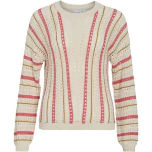 Vila Vimarian o-neck ls stripe knit top ecru dessin