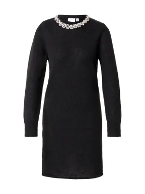 VILA Gebreide jurk ‘Alice’ zwart / zilver