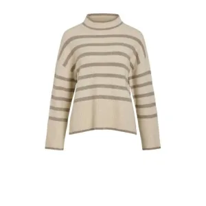 VILA gestreepte gebreide trui zand