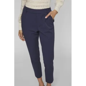 VILA wide leg high waist casual broek marineblauw
