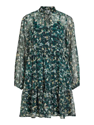 VILA Jurk ‘FALIA’ sand / donkergroen / zwart / zilver
