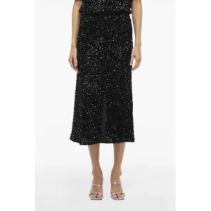 VILA midi rok met pailletten zwart