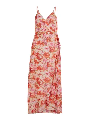 VILA Zomerjurk ‘GILLA’ crème / koraal / pitaja roze / wit