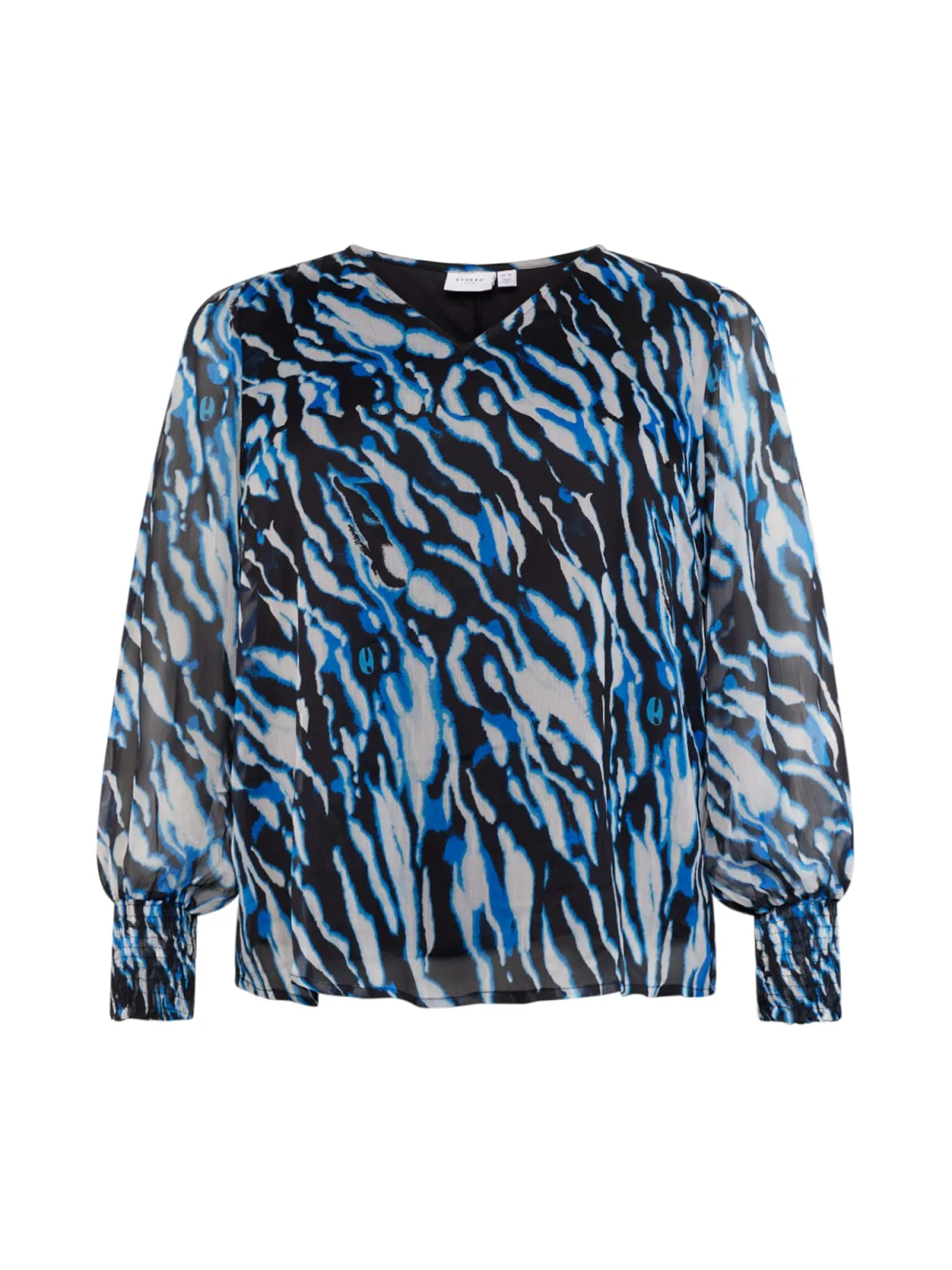 VILA Blouse royal blue/koningsblauw / zwart / offwhite