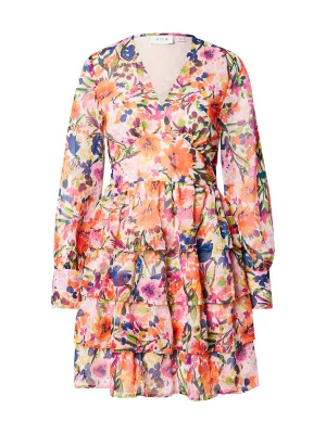 VILA Jurk ‘VIMICHA’ blauw / groen / kreeft / oudroze